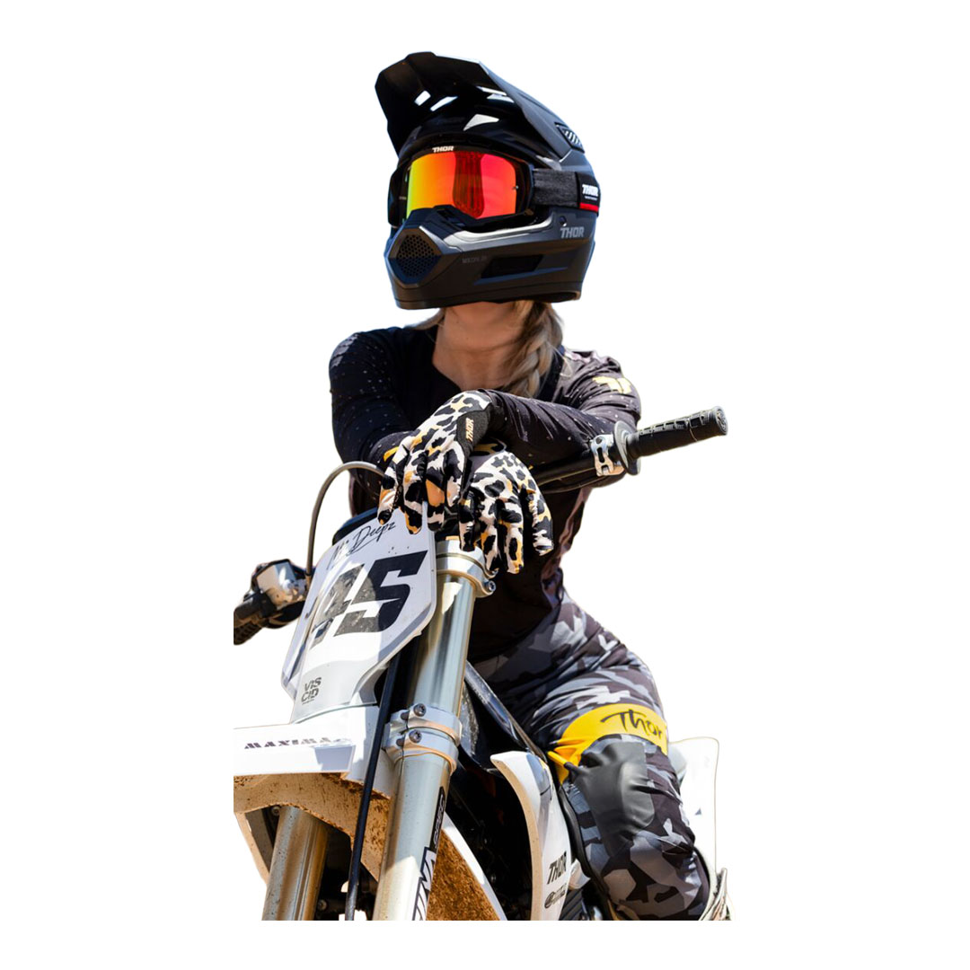 Thor Sportmode Cheetah ženske kros rukavice dizajnirane su za neometano kretanje, siguran grip i udobnost tijekom kros i enduro vožnje. Rastezljiva konstrukcija omogućuje precizno pristajanje, dok Clarino® materijal na dlanu pruža udoban i pouzdan osjećaj na upravljaču.