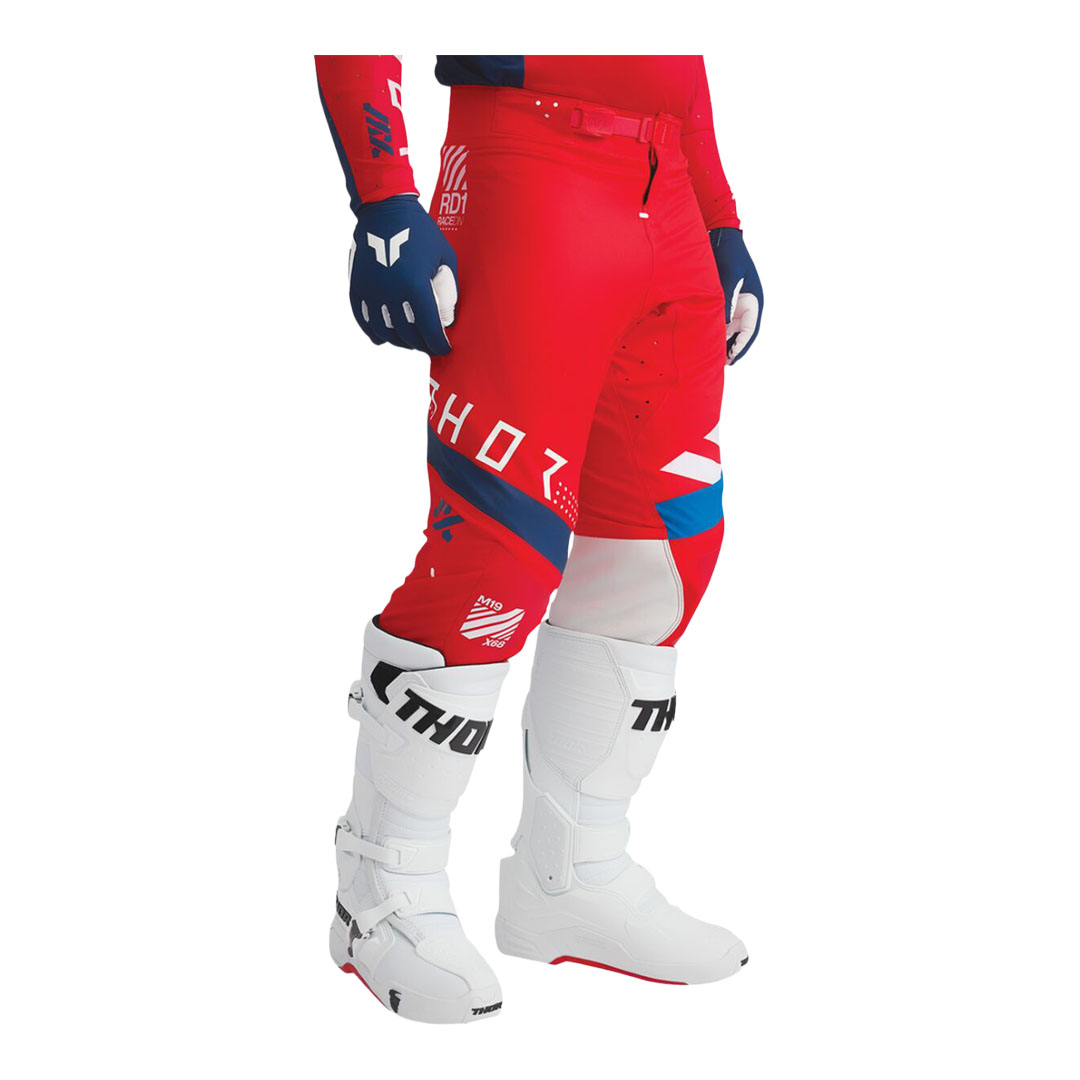 Thor Sportmode Synth hlače dizajnirane su za atletsko pristajanje i visoku razinu pokretljivosti tijekom kros i enduro vožnje. Četverosmjerna rastezljiva In-Motion konstrukcija od poliester/spandex materijala omogućuje neograničeno kretanje, laserski rezane perforacije poboljšavaju ventilaciju, a dodatna ojačanja u području koljena povećavaju izdržljivost pri intenzivnoj uporabi.