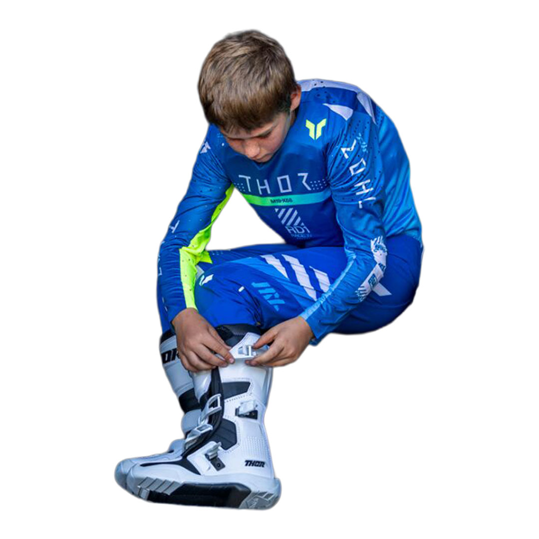Thor Sportmode Synth otroške kros hlače dizajnirane su za atletsko pristajanje i visoku razinu pokretljivosti tijekom kros i enduro vožnje. 4-smjerna rastezljiva In-Motion konstrukcija omogućuje neometano kretanje, dok materijali s upijanjem vlage pomažu održati tijelo suhim.