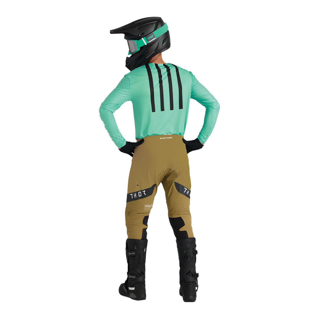 Thor Sportmode Flite hlače dizajnirane su s minimalnim brojem šavova za maksimalnu rastezljivost i udobnost te atletsko pristajanje tijekom kros i enduro vožnje. 4-smjerna rastezljiva In-Motion konstrukcija omogućuje neograničeno kretanje, dok ventilacijske perforacije pomažu pri odvodu topline tijekom vožnje.